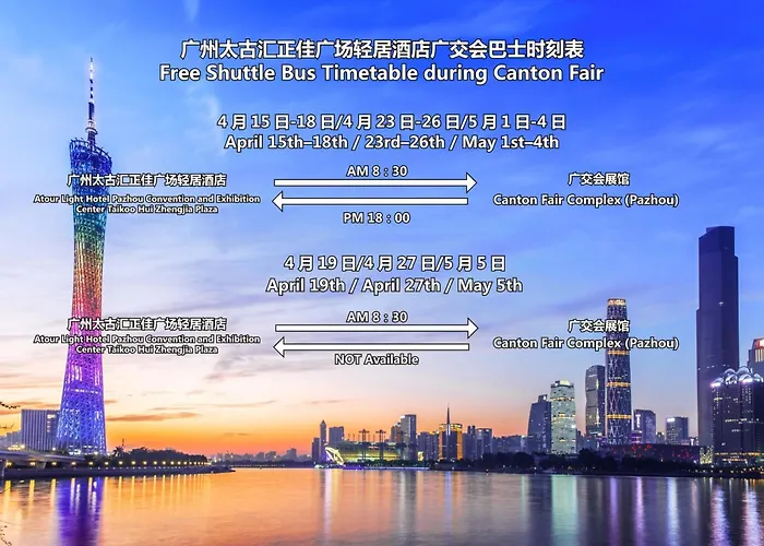 Este hotel de 4 estrellas está situado a 4 km del Jardín de Yuntai y a 2 km de la Torre de televisión de Cantón. Entre los lugares de interés educativo de la zona se encuentran la Universidad Normal del Sur de China ( 2,1 km) y la Universidad Jinan ( 4,1 km). Los lugares de compras cercanos incluyen el Complejo Empresarial y Comercial TaiKoo Hui, que está a unos 30 minutos a pie. El Atour Light Hotel Pazhou Convention And Exhibition Center Taikoo Hui Zhengjia Plaza está cerca del transporte público, a 450 metros de la estación de metro Shipaiqiao y a unos minutos a pie de la parada de autobuses Haixinjie.